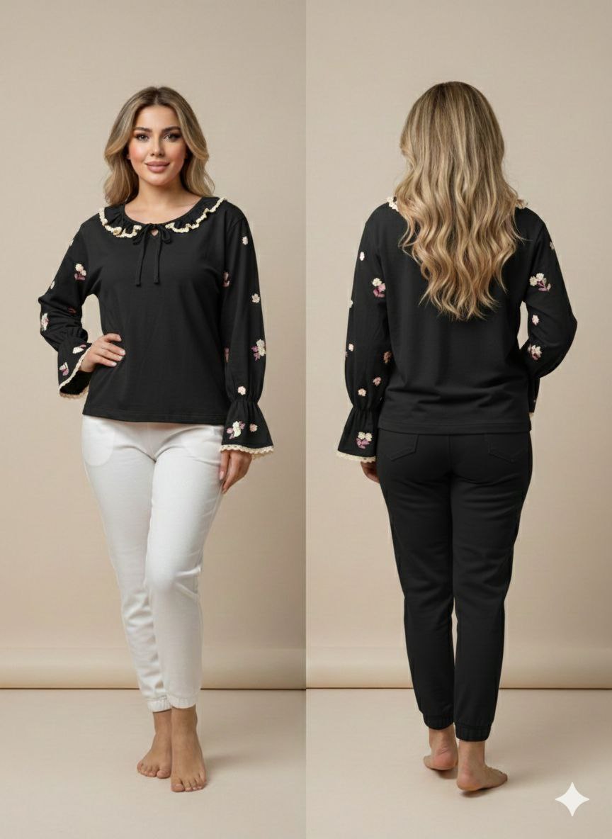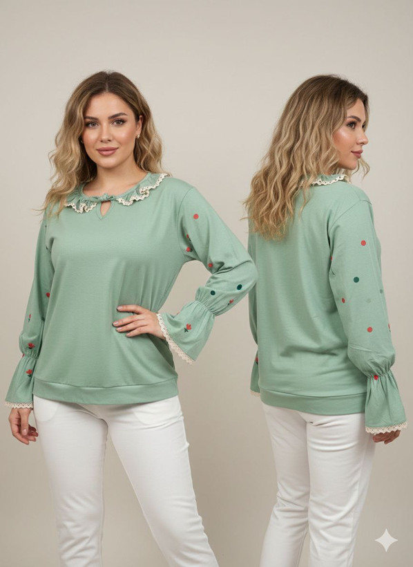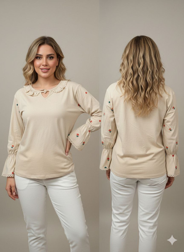 بلوز یقه گیپور زنانه دخترانه تمام پنبه چهار فصل مایسا